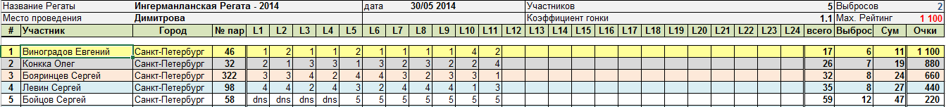 Результаты сейчас сведу в рейтинг и общую таблицу вашей Регаты.