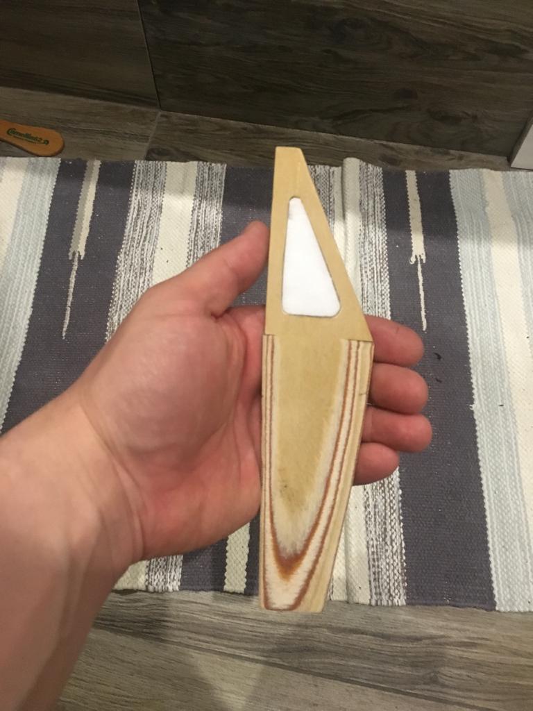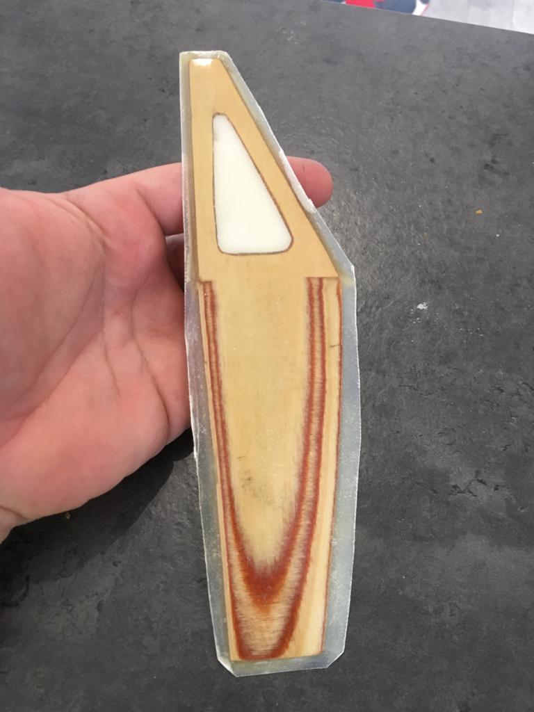киль выполнен из переклея 3-х слоёв 1мм фанеры на смоле с оклейкой 3-4 слоями стеклоткани 0,01 мм
