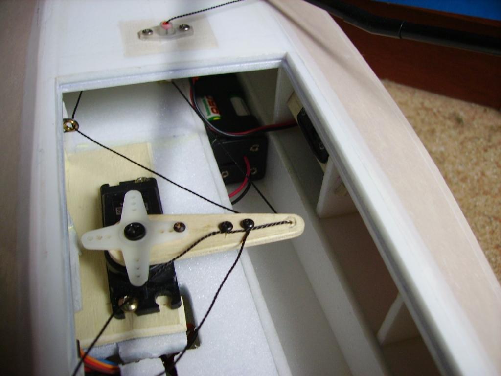 Конструктивно яхта удалась. Прочности корпусу из потолочки и картона вполне хватает, возникает желание замахнуться на RG65 или даже на 800, надо только найти изюминку, ради чего её стоит делать. Рангоут без оттяжки оправдал все ожидания, всё работает как и планировалось. Гик грота в 10 мм от палубы, гик стакселя в 15. Если кого-то волнует индуктивное сопротивление от перетекания воздуха между корпусом и палубой – то тропа проложена, вперед. Лебедка придет наверное на следующей неделе, а пока установлена стандартная серва Sanwa (srm 102), которая преподнесла приятный сюрприз – она хладнокровна выдала расход порядка 130-140 градусов, поэтому обошлось без полиспаста, под который я даже не предусмотрел точек крепления шкотов.