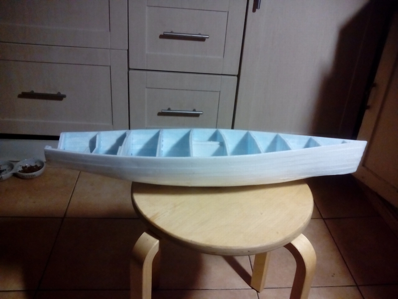 привет ИГОРЬ чем будешь обшивать корпус.дальнейшие действия.-проклейка стеклотканью со смолой-шпаклевка-покраска.готовый корпус с палубой желательно сделать 60 граммов.потом будешь набирать на рангоуте и т. д .с ув. Александр.