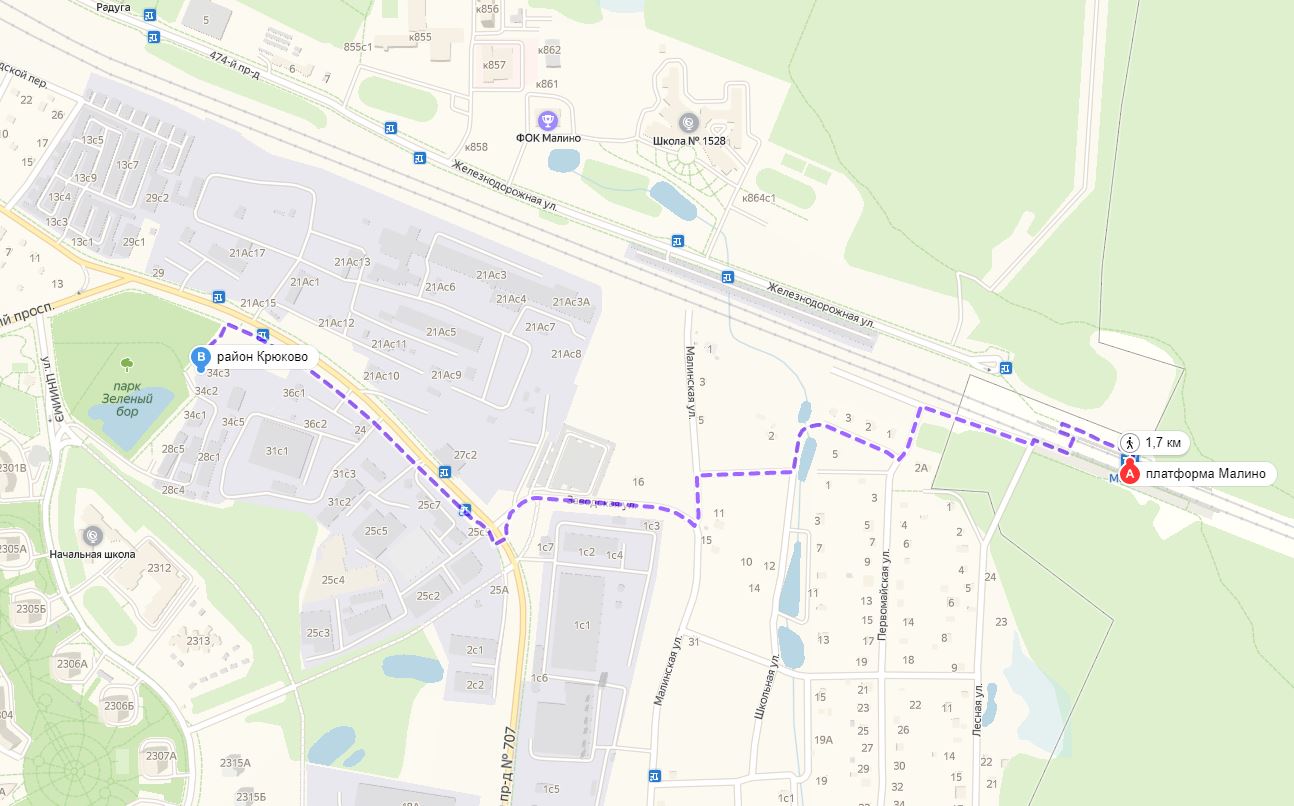 1. ст. Крюково выход к Крюково (на левую сторону жел. дороги от движения электрички)