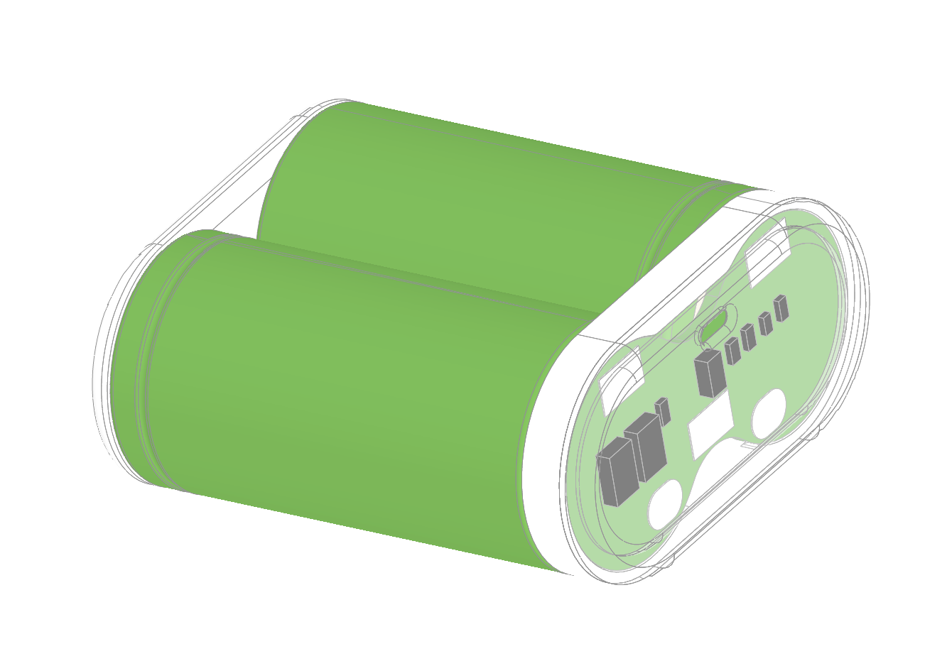Сборка батарей 18350 массой 52 грамма вместе с балансировочнозарядной платой и упаковкой.
