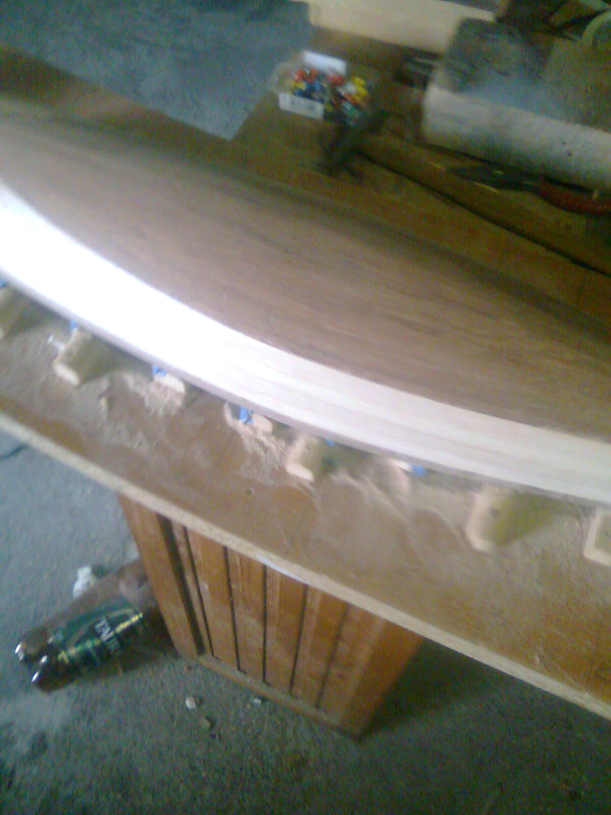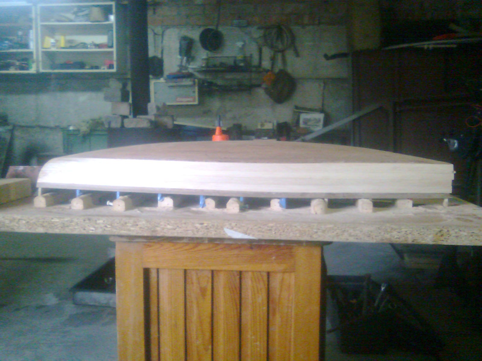 решил не заморачиваться с искривленным кокпитом,нашлась заначка шпона,как раз хватило обклеить палубу.На прицепе швертбот,470 класса