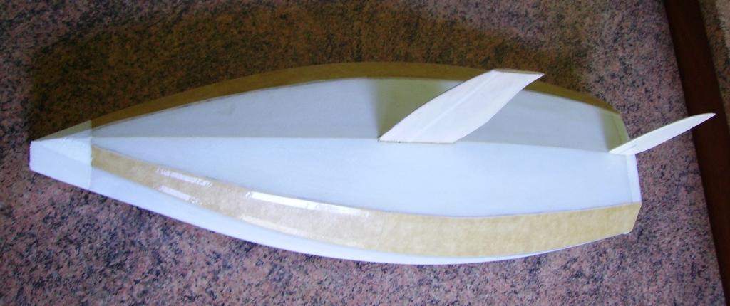 Корпус опять будет комбинированный, потолочно-картонный, грех отказываться от проверенных и удачных решений. Можно было бы сделать корпус и из «фруктовой» фанеры, прошлифовав её до двух миллиметров (друг делал из неё Jif-65 - очень хорошо получилось), но это на будущее. Поскольку гик будет очень низко, рубки не будет, короче, получится «авианосец» с совершенно ровной палубой и двумя, стоящими по оси корпуса гермовыводами шкотов. Крепление, вант, стакселя, ахтерштага будет интегрировано в корпус, гермолюк в кормовой части как на Footy, вровень с палубой, да еще он попадает в зону «окраски» скотчем, видно его практически не будет. Кстати такая нетрадиционная окраска, как на Footy, появилась совершенно не случайно, на большом расстоянии она позволяет однозначно определить ориентацию корпуса яхты, что не всегда удается сделать даже по разноцветным парусам. Гермовыводы конструктивно будут такие же как и на Footy – стеклярус в трубке от гелиевой ручки, минимальное трение при хорошей герметичности и простоте конструкции.